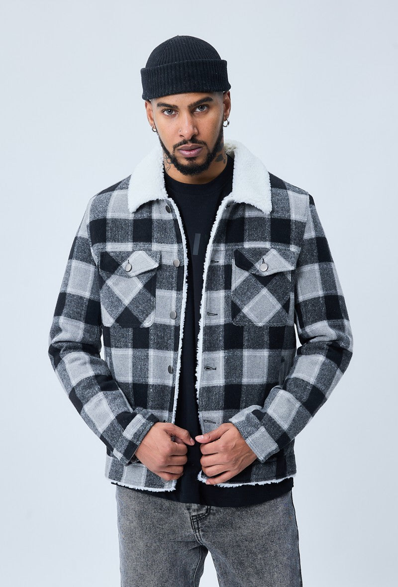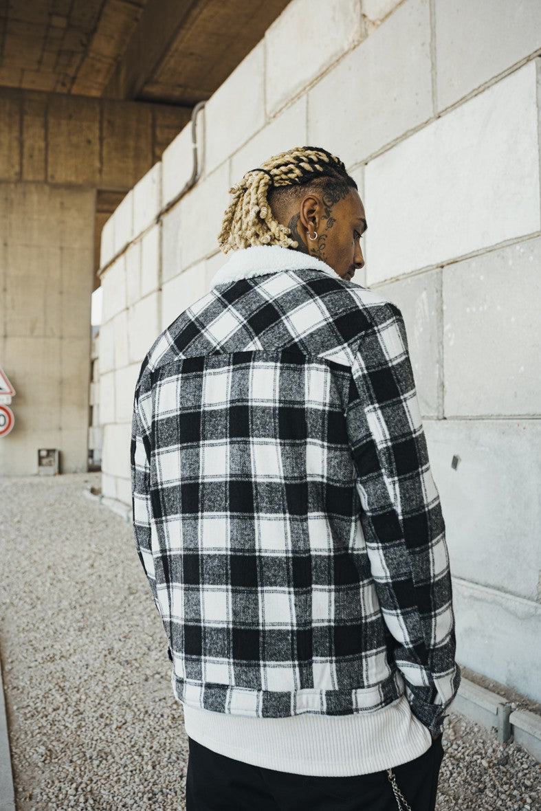 Geruit jasje met schapenkraag