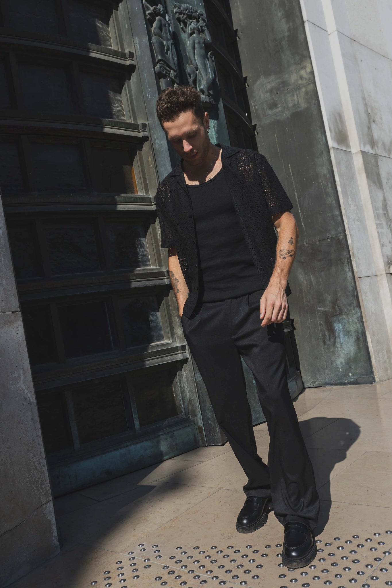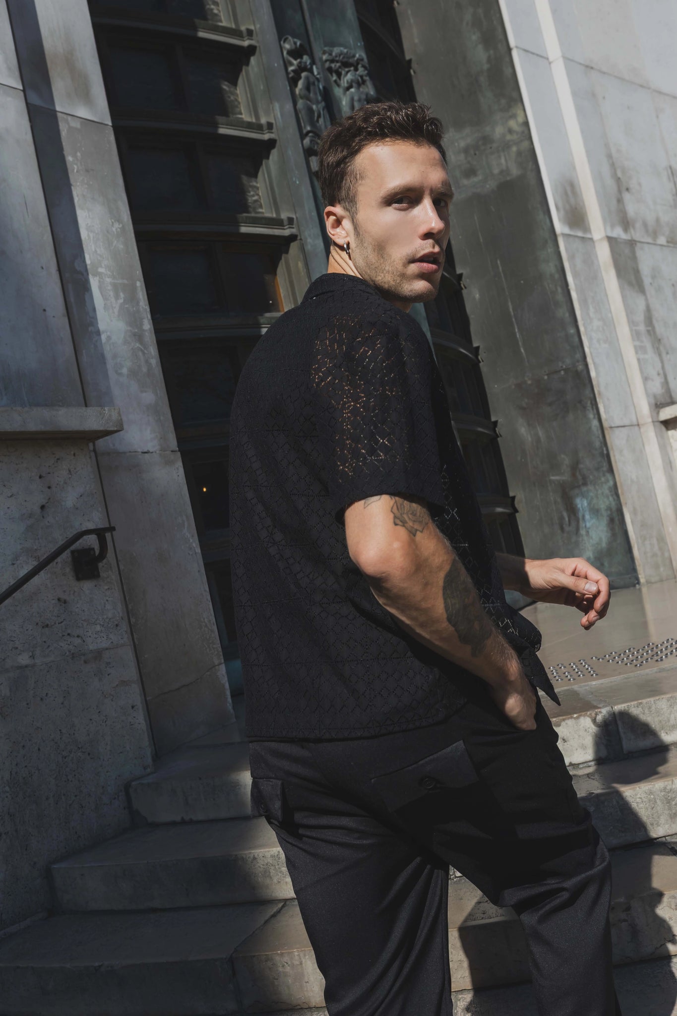 Kanten overhemd met korte mouwen en reverskraag