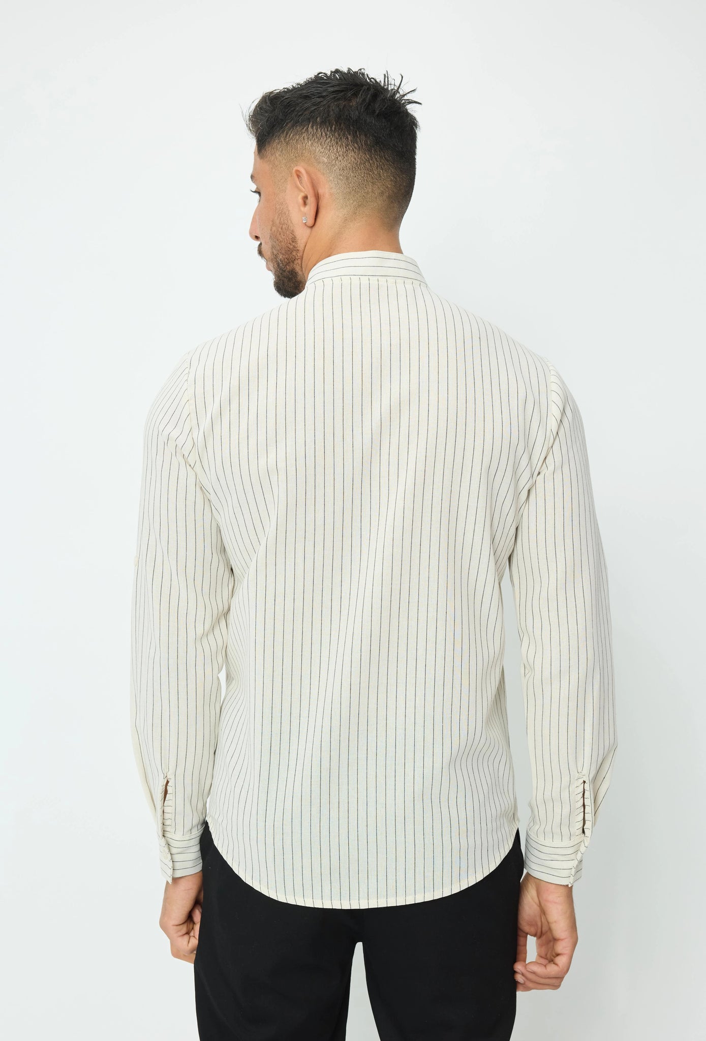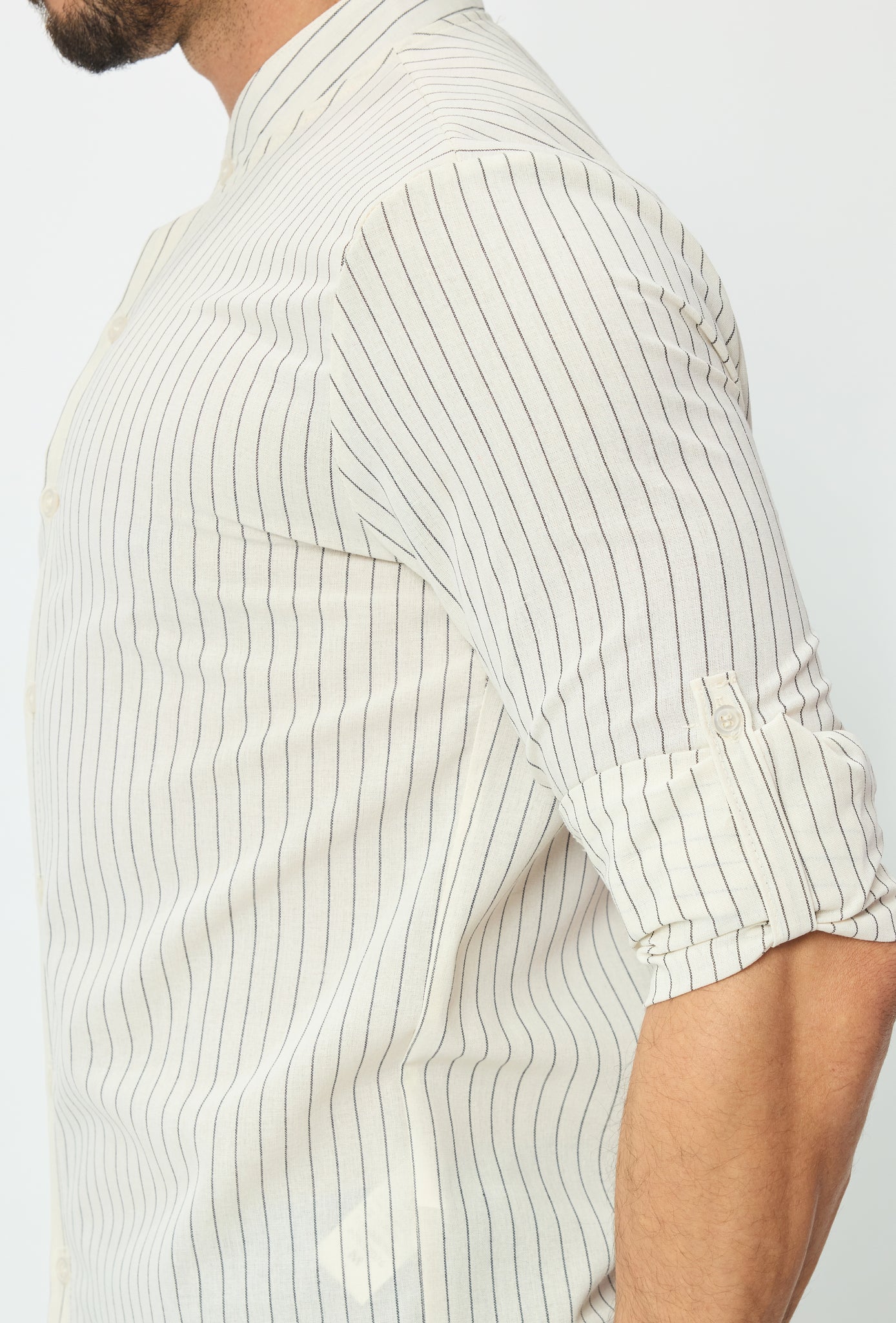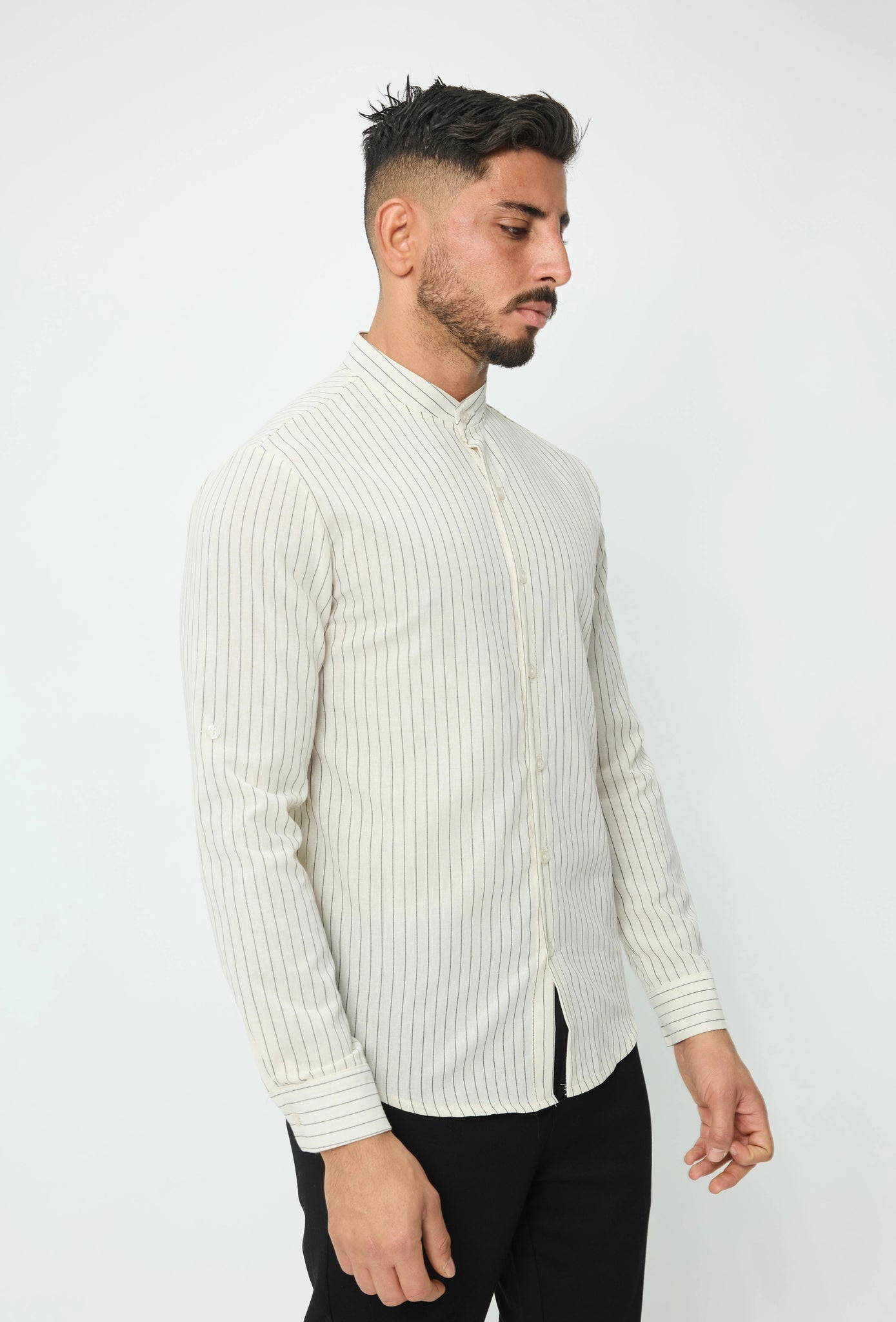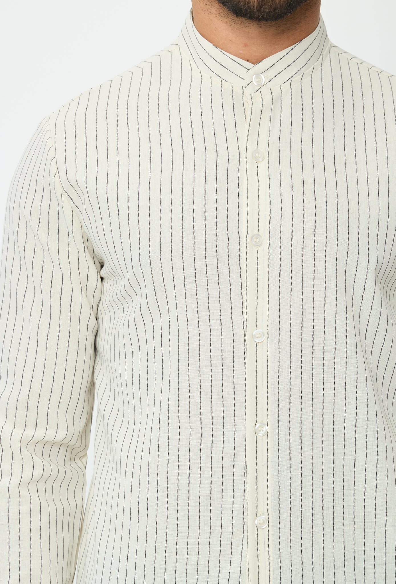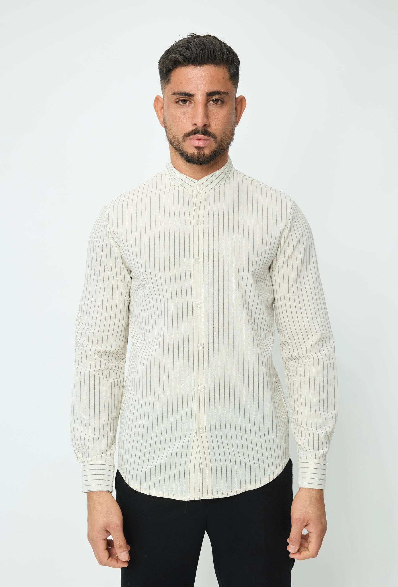 Linnenmix overhemd met Koreaanse kraag
